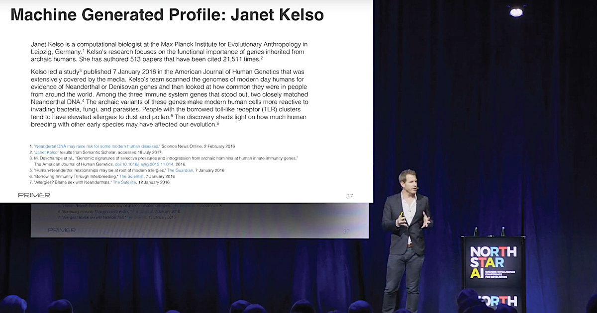 Many groundbreaking ideas were presented at North Star AI conference this year. Among them was a technological development that touches on what has been a strictly human endeavor in the past. Sean Gourley, CEO and Founder of Primer AI, showed us how his company is building machine intelligence that can read and write.