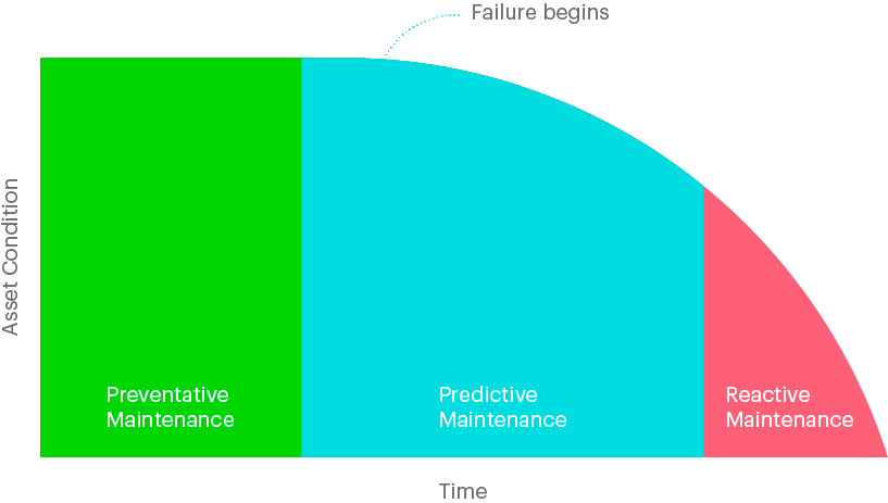 One technique to deal with equipment failure is to wait until it happens and then fix it. This is known as reactive maintenance (or run-to-failure maintenance). Depending on the equipment and its use case, this might be a good enough solution, however, often machine downtime leads to a high financial loss. It is also possible that the failure of one part can start a chain reaction of other assets parts breaking.