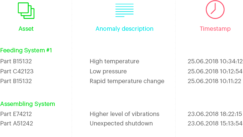 Anomaly detection systems cannot determine the exact fault source but can provide hints to an expert where the problem might be located. An expert can then examine the equipment’s history by looking at the machine data to determine where the problem might originate.