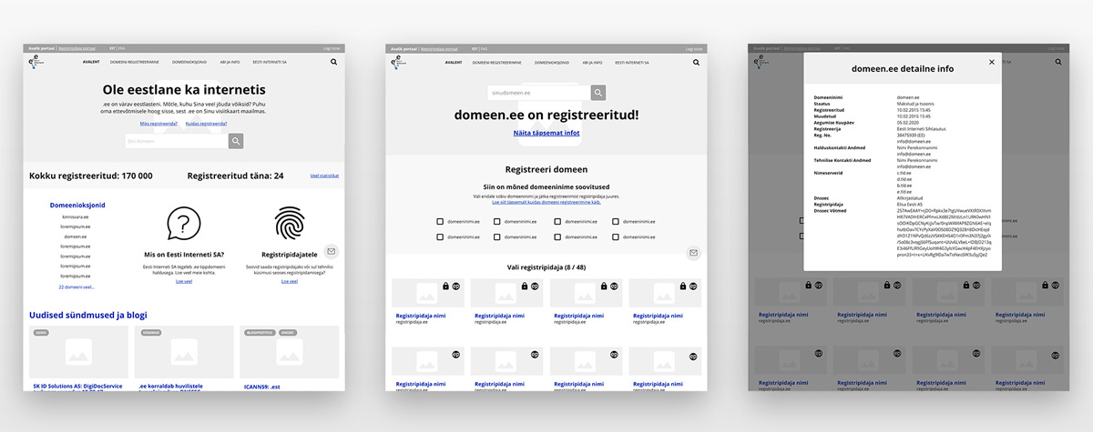 We started the design project for the Estonian Internet Foundation with a similar challenge. The Foundation handles the management of Estonia’s top-level domain .ee, its sub-domains, and shares information regarding the .ee country domain. For managing the registration of domain names and sharing information about the domain rules, the Foundation had six different current- and planned web environments gathered under the domain internet.ee.
