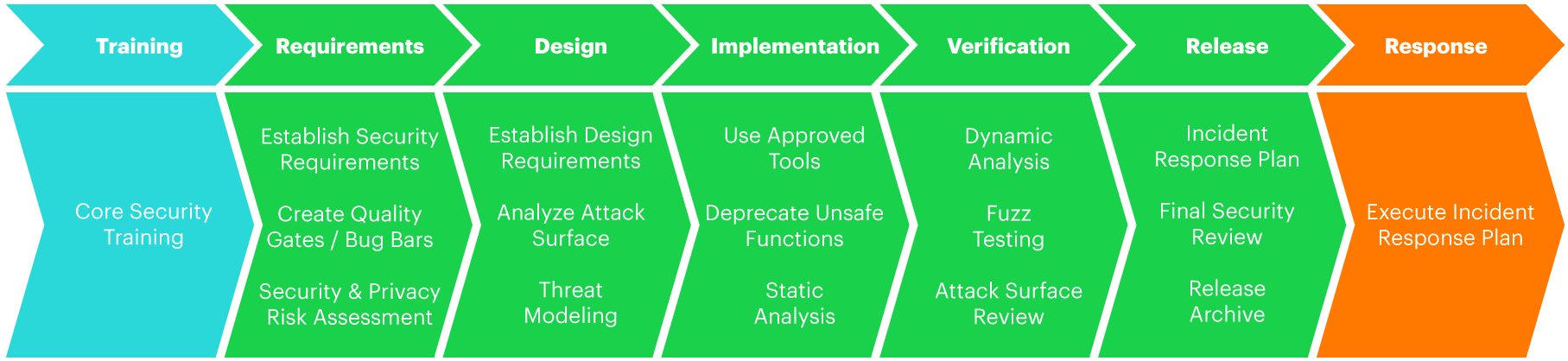 If your company has not yet implemented any Security Development Lifecycle, we recommend that you experiment with the Microsoft model and then adjust it to your company’s needs.