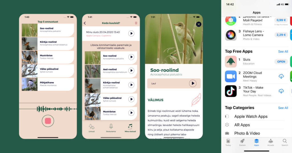 The iOS version of Siuts, the bird-sounds learning app, was released on April 22. Although in the testing phase, the app has already become popular among Estonian nature lovers.